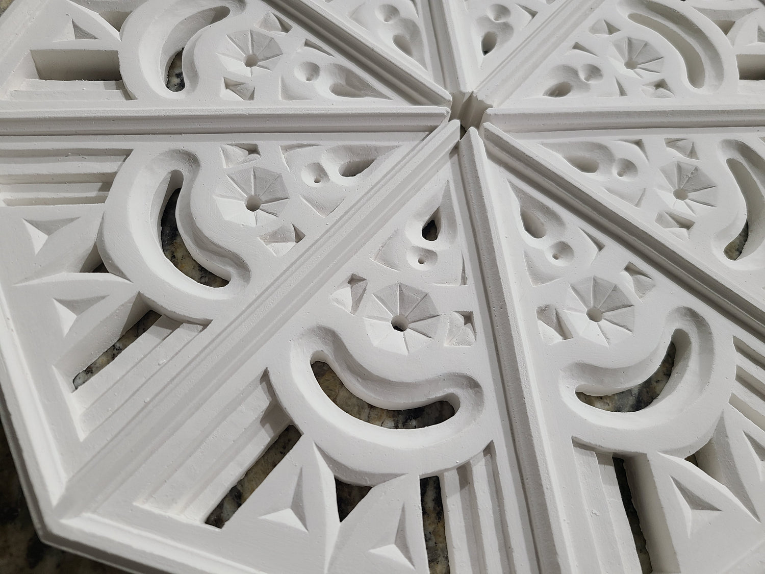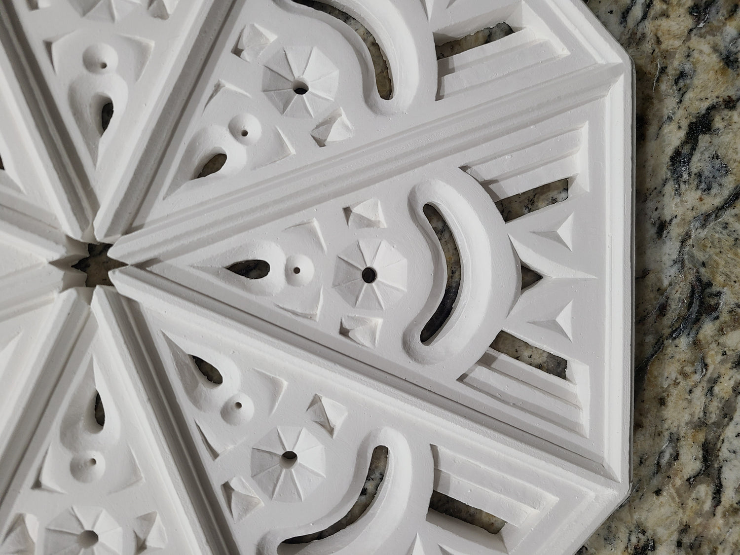 Hand Carved then molded and cast in plaster an original design for a small wall piece 15in. wide