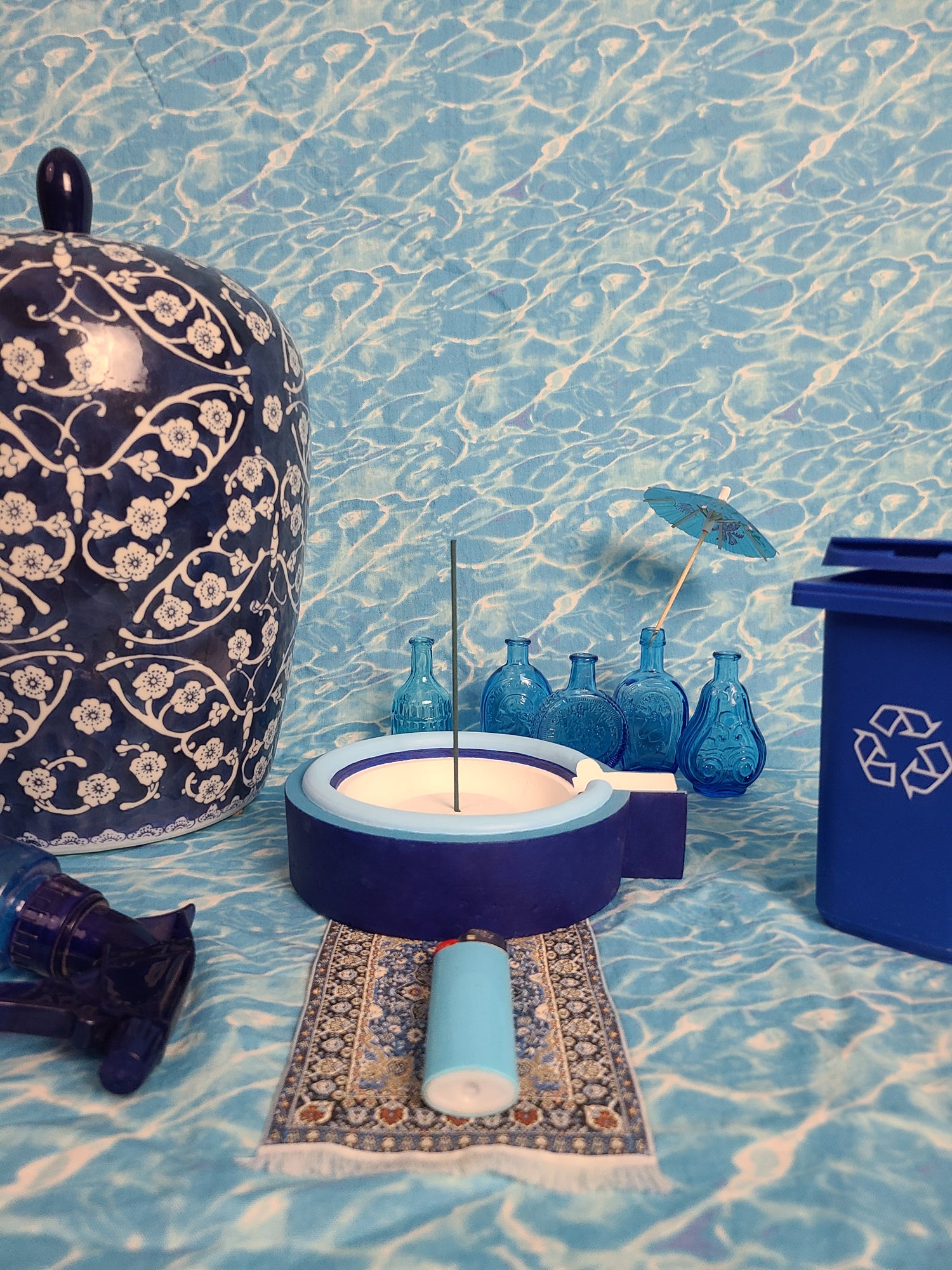 Handpainted Blue Plaster Variant. Holds Incense, Cones, Palo Santo, Smoke